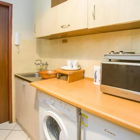 Eine komplette Küche ist in den Zimmern dieser Unterkünfte vorhanden. Das Wspolna Apartment liegt in 100 Meter Entfernung von der U-Bahn-Station Zentrum und ein paar Schritte entfernt vom Bahnhof Warschau Stadtmitte.